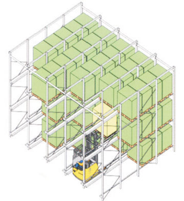 - 駛?cè)胧截浖軉蜗蜇浖芸偵疃日2怀^(guò)7個(gè)托盤(pán)深度,但設(shè)計(jì)時(shí)貴公司為了提高存儲(chǔ)容量,加長(zhǎng)到10個(gè)托盤(pán)深度,所以叉車駛?cè)胴浖芡ɡ葍?nèi)叉取貨物或叉取提升貨物后退出貨架通廊時(shí),一定要對(duì)正通道,緩慢行駛,保持直行,避免叉車撞到貨架。